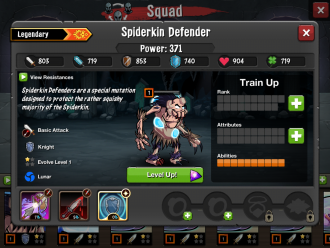 Spiderkin Defender, abilities: Rending Whirlwind, Slice, Warding Guard