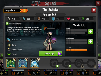 The Scholar, abilities: Mass Heal, Symbol of Shielding, Mana Burst (5) Power 342