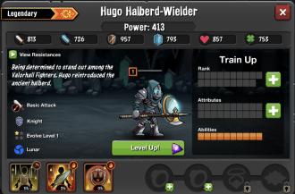Hugo Halberd-Wielder, abilities: Defend, Hellfyre Strike, Terra Ward
