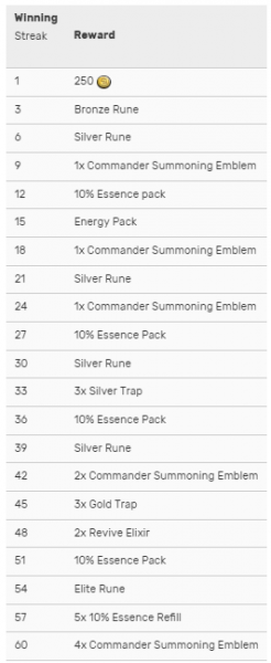 During these you get reward based on your overall placement during 4 weekly tournaments, without weekly bonuses mentioned previously. This is not for players that don’t have their storage filled with arena energy packs, lots of diamonds, or a bunch of commanders that can be leveled up.