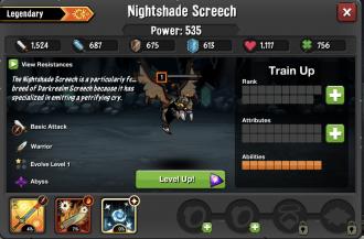Nightshade Screech, abilities: Deep Slash, Fiery Cleave, Channel Mana