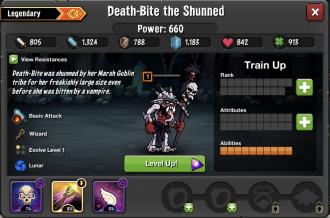 Death-Bite the Shunned, abilities: Darkness Unending, Plasma Bolt, Slow 4